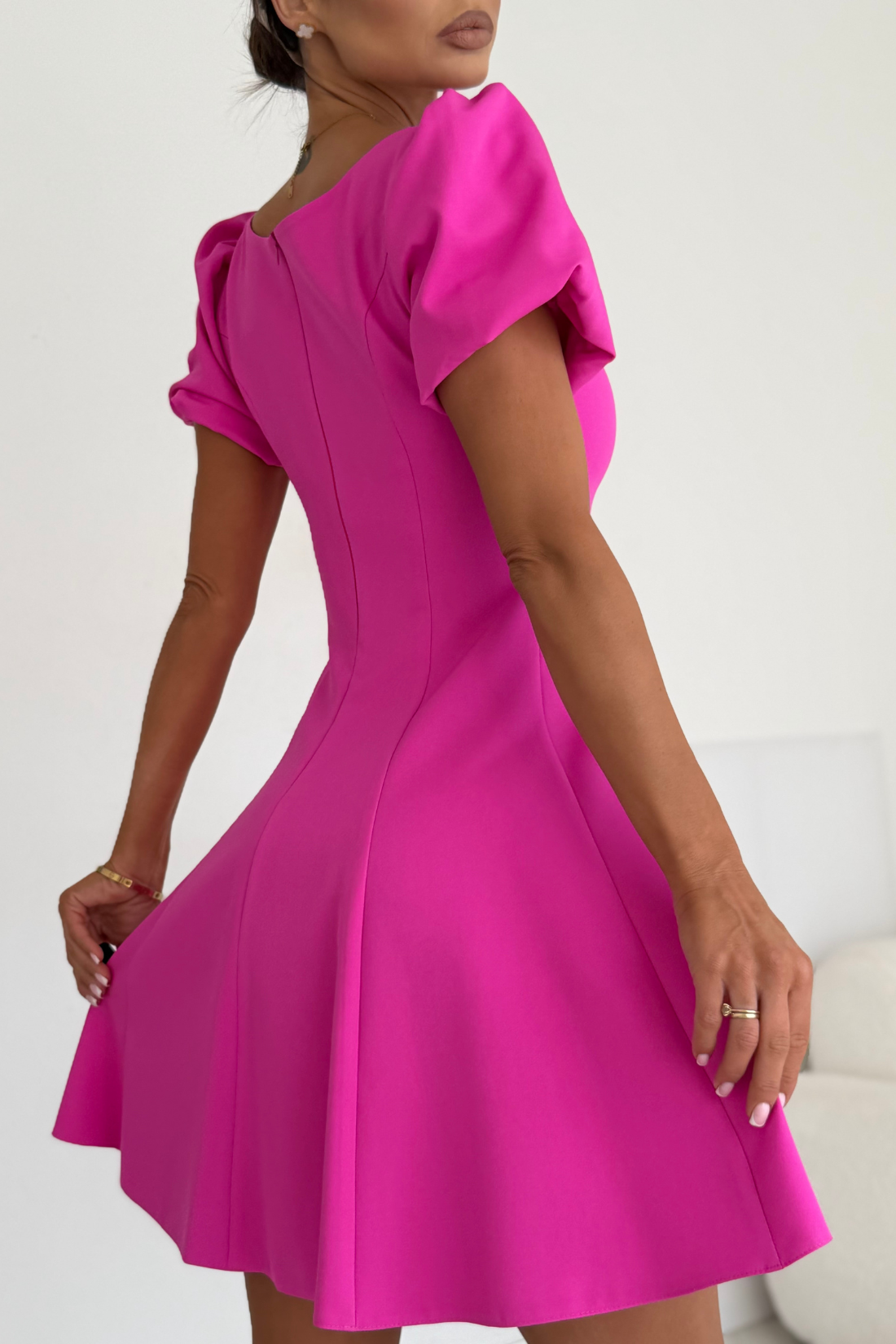 Ten model daje szerokie możliwości stylizacyjne. Klasyczna forma ułatwia dobór dodatków. W ten sposób sukienkę można nosić na różne okazje. CHANEL – fuksjowa sukienka mini z balonowymi rękawami doskonale sprawdzi się na: