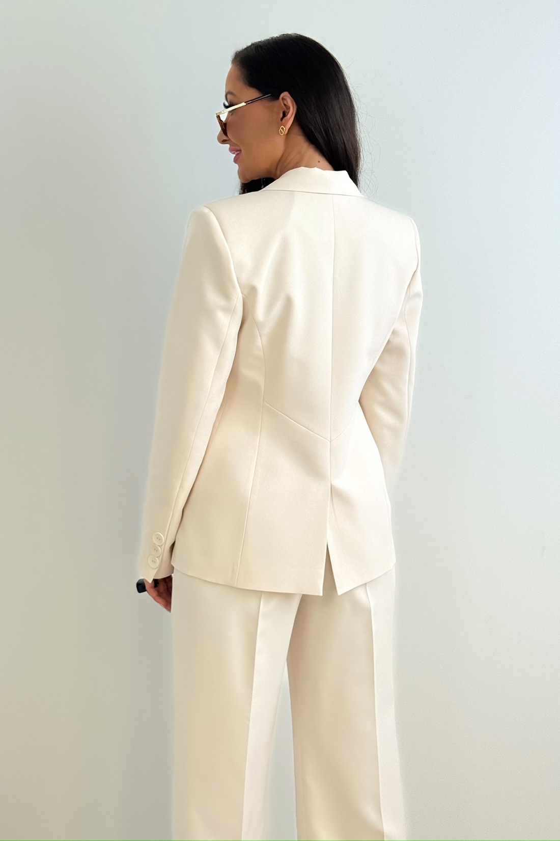 - Zestaw: taliowana marynarka z podszewką oraz luźne spodnie