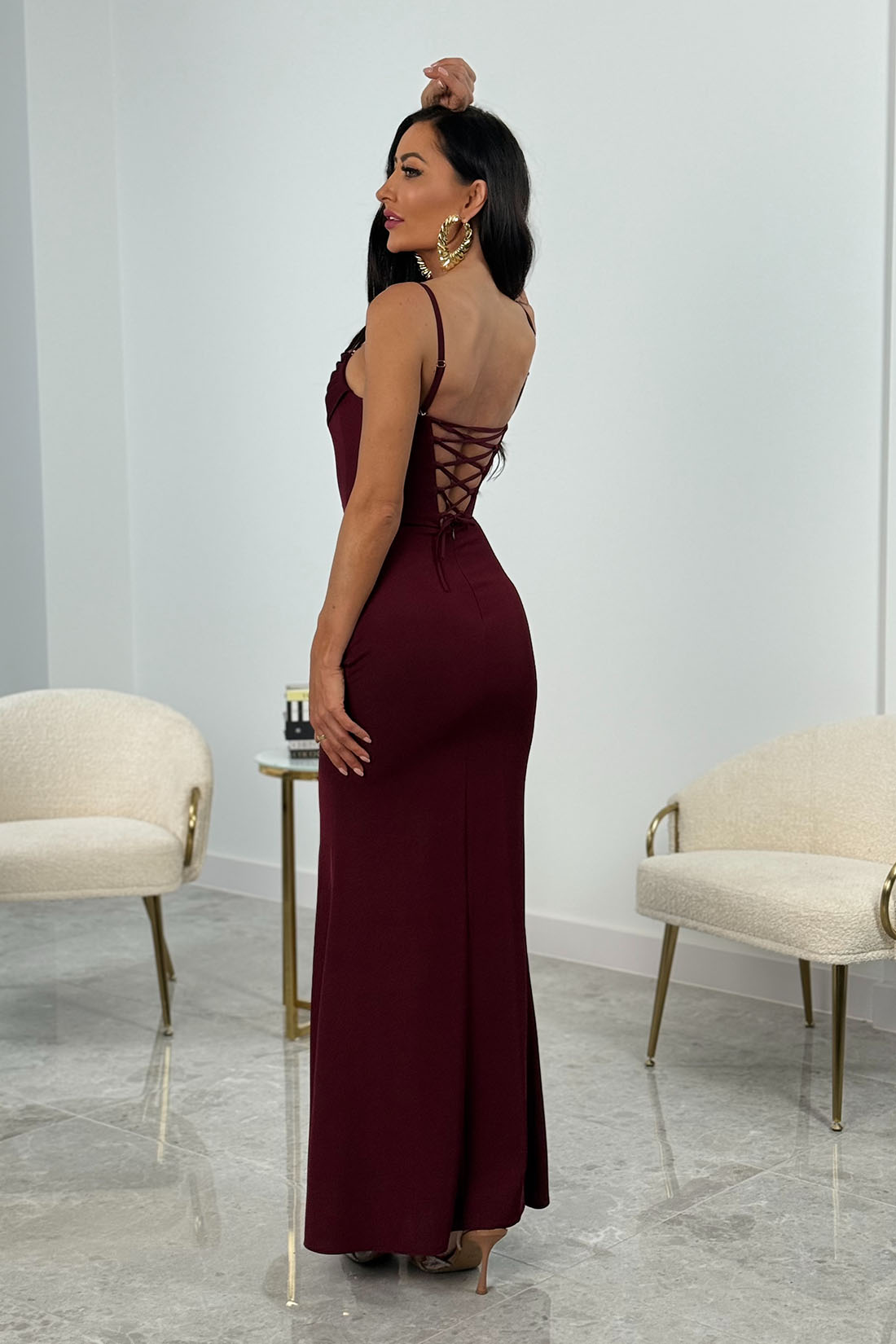 ROCHEL – bordowa gorsetowa sukienka maxi o kroju syrenki