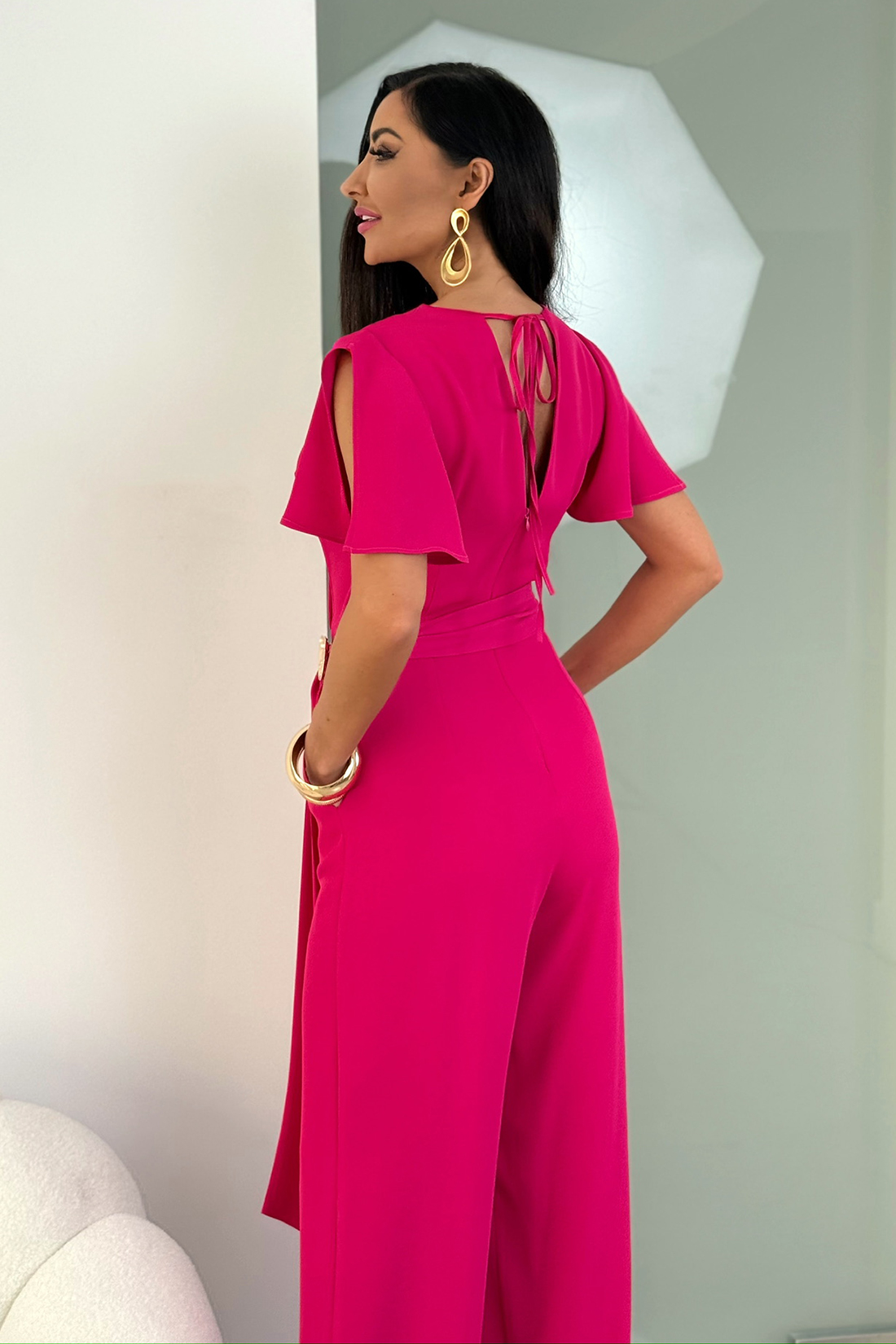 TRIS – fuksjowy elegancki kombinezon z złotą klamrą